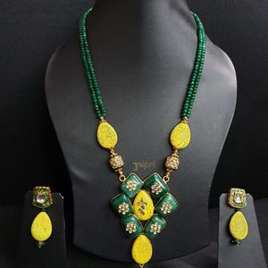 Green Yellow Beads Stone Fusion Pendant With Earrings