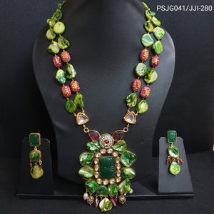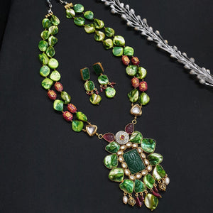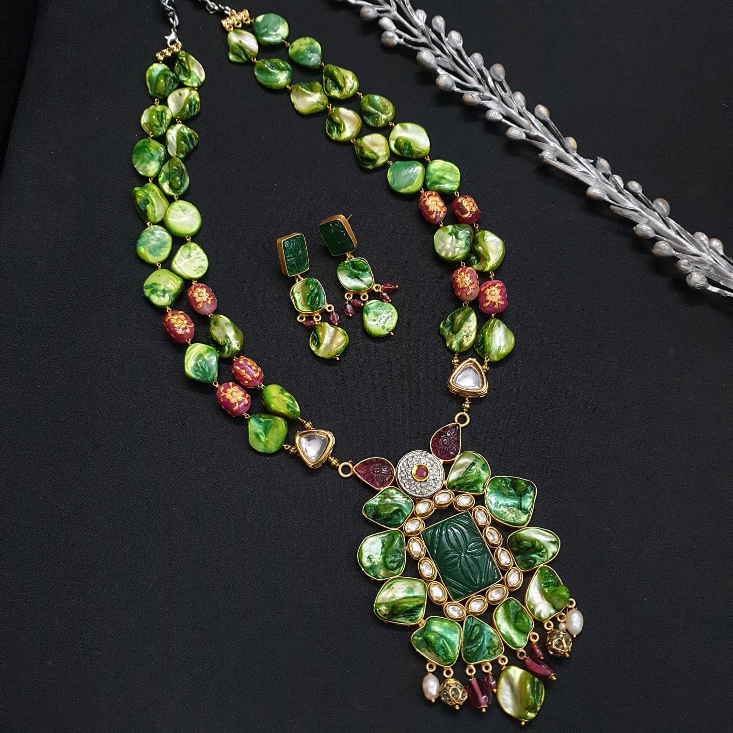 Mother of Pearl Green Beaded Fusion Pendant Set