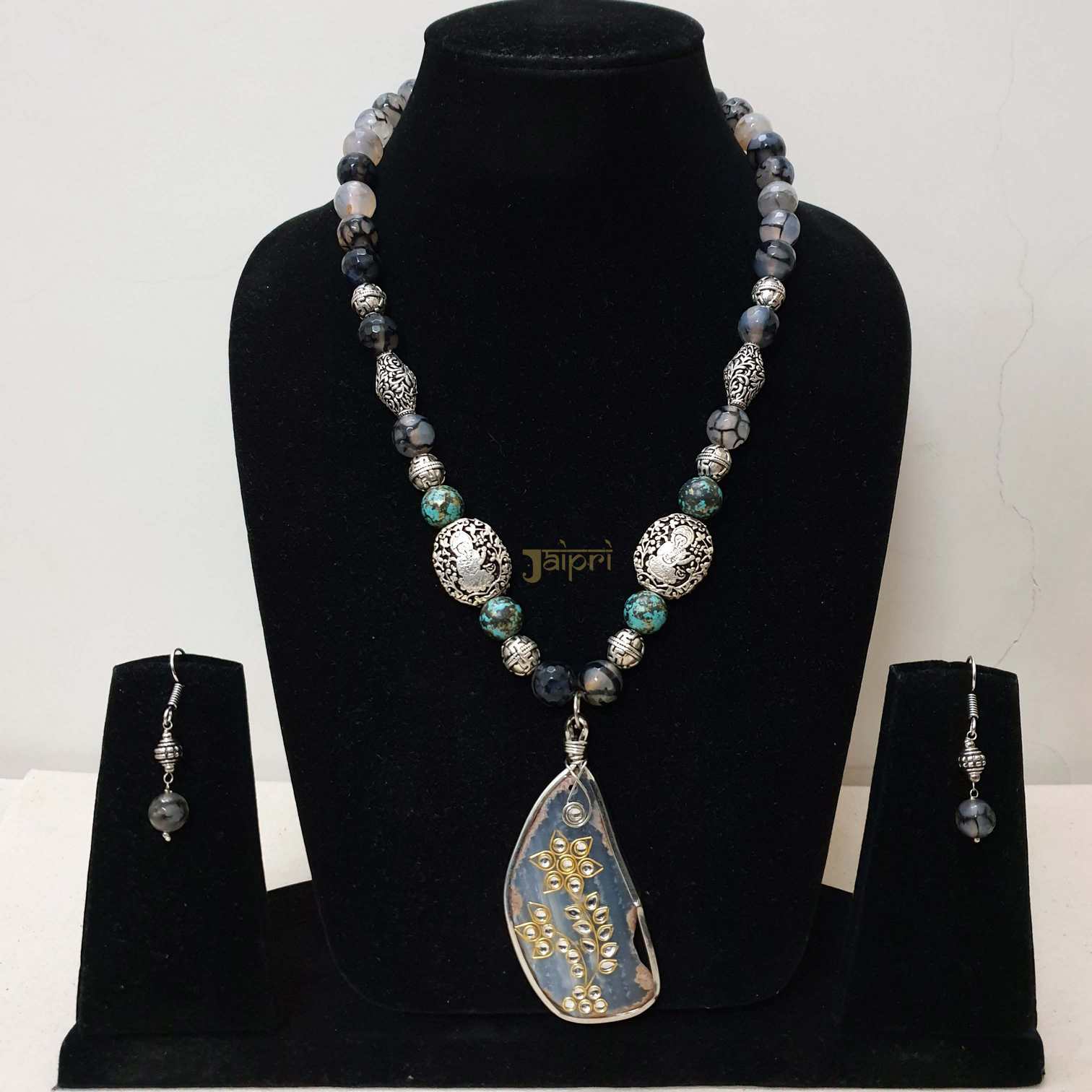 Unique Multicolor Beads Stone Uneven Fusion Pendant With Earrings