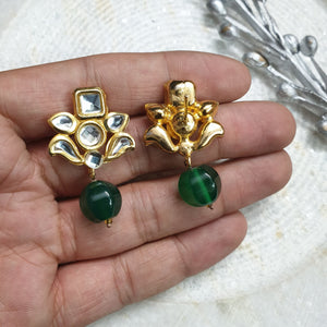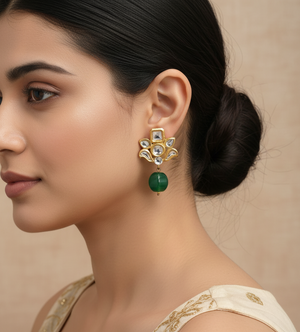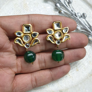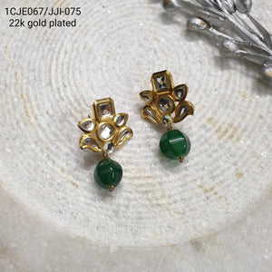 22k Gold Plated Green Drop Kundan Studs Earrings
