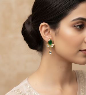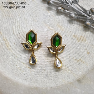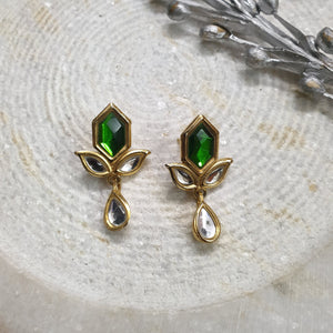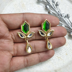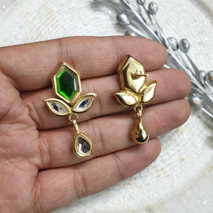 22k Gold Plated Green Leaf Stud Kundan Earrings