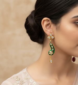 Styling: These are the perfect accessories to accentuate the elegance of your traditional outfit, furthermore, adding a perfect pop of colour and edginess. The beautiful elements of the earrings go well with the saree or any Western dress. Statement earrings are enough to make the entire outfit look amazing. It looks better with a solid colour outfit or a pastel outfit.