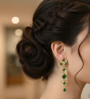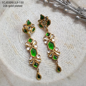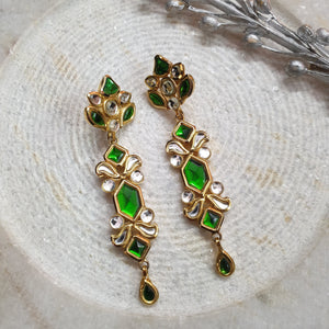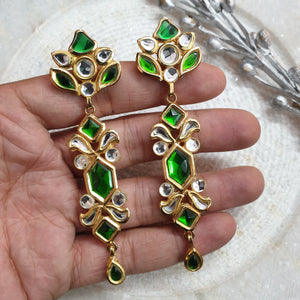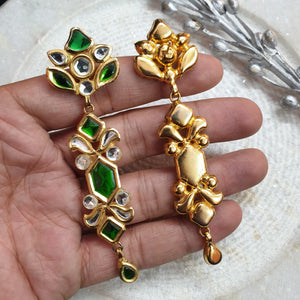 22k Gold Plated Green Stone Long Kundan Earrings