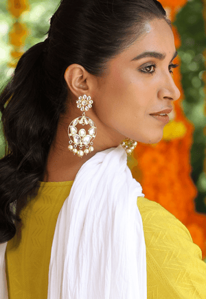 Elevate your everyday style with these luxe 22k gold-plated kundan chanbali earrings. Crafted from fine materials, this pair will add an air of sophistication to any ensemble. An ideal piece for those who value quality and understated luxury.