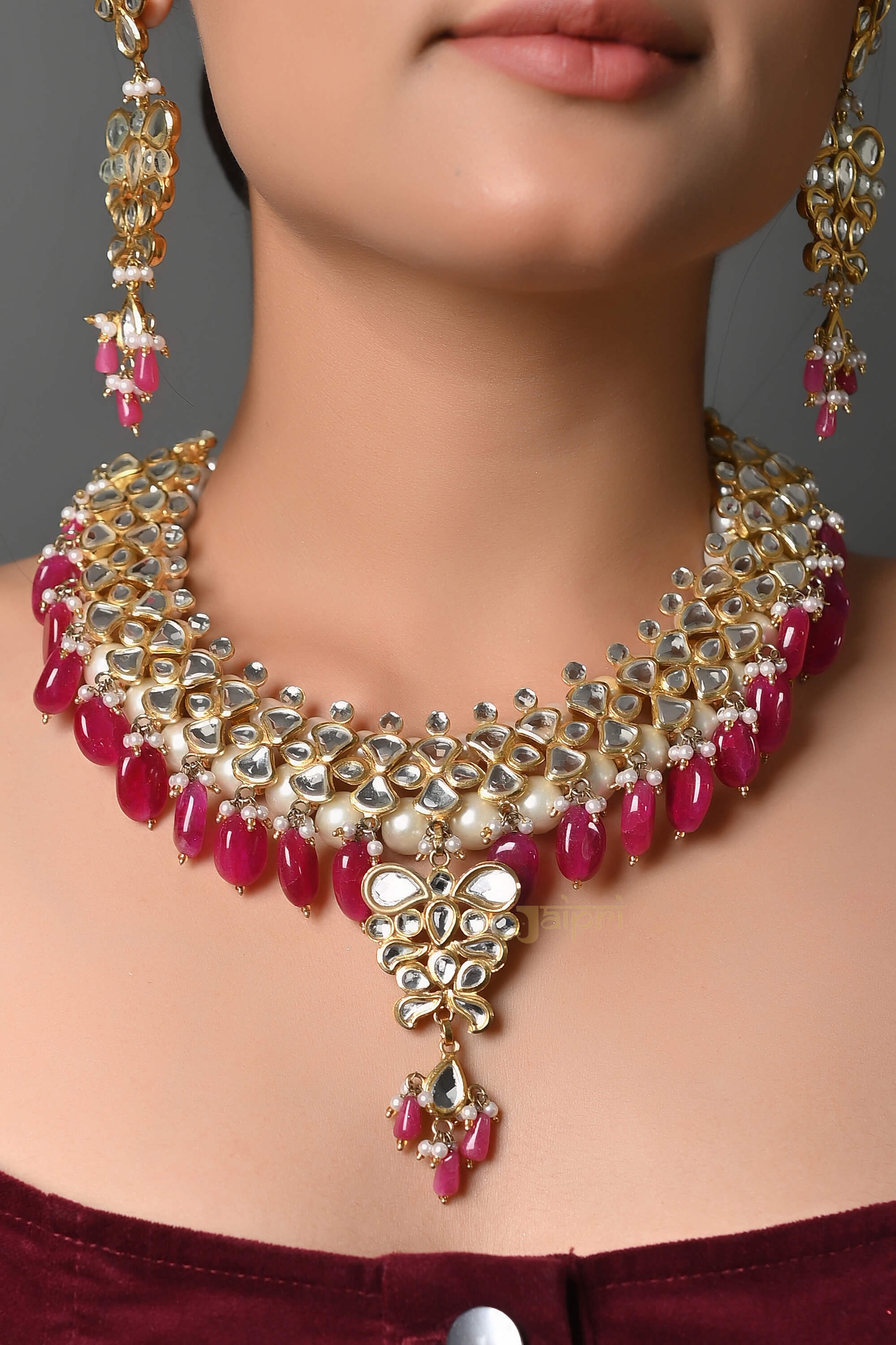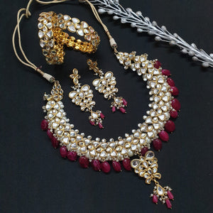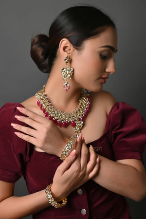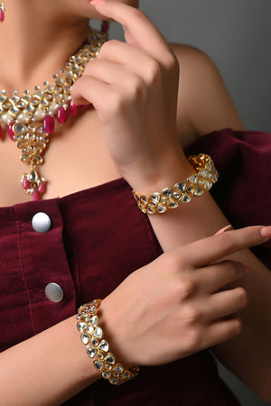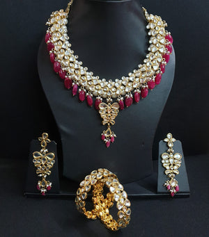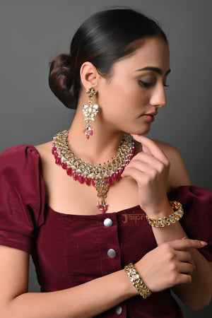 22k Gold Plated Kundan Necklace With Earrings And Bangles