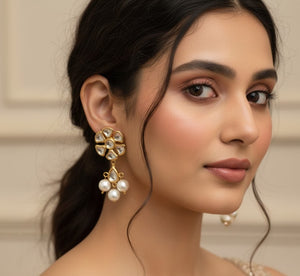 An elegant pearl stone kundan earrings with the most stunning festoon. The perfect accessory for your occasion. This earrings are handcrafted with love
