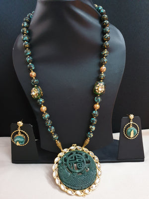 22k Gold Plated Kundan Set With Handpainted Beads and Earrings