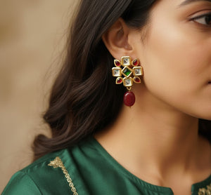 Styling: These are the perfect accessories to accentuate the elegance of your traditional outfit, furthermore, adding a perfect pop of colour and edginess. The beautiful elements of the earrings go well with the saree or any Western dress. Statement earrings are enough to make the entire outfit look amazing. It looks better with a solid colour outfit or a pastel outfit.