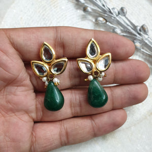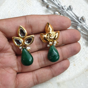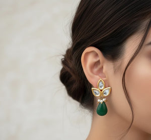 22k Gold Plated Leaf Kundan Earrings