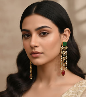 Styling: These are the perfect accessories to accentuate the elegance of your traditional outfit, furthermore, adding a perfect pop of colour and edginess. The beautiful elements of the earrings go well with the saree or any Western dress. Statement earrings are enough to make the entire outfit look amazing. It looks better with a solid colour outfit or a pastel outfit.