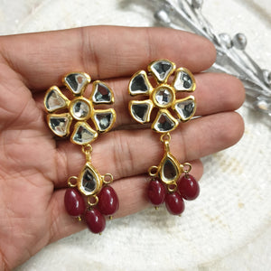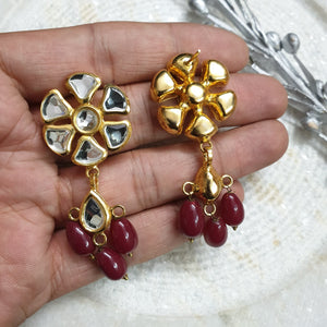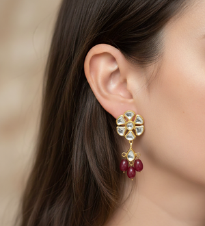 22k Gold Plated Maroon Floral Kundan Drop Earrings