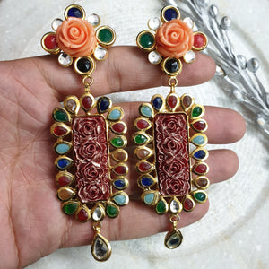 Styling: These are the perfect accessories to accentuate the elegance of your traditional outfit, furthermore, adding a perfect pop of colour and edginess. The beautiful elements of the earrings go well with the saree or any Western dress. Statement earrings are enough to make the entire outfit look amazing. It looks better with a solid colour outfit or a pastel outfit.