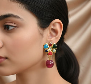 Styling: These are the perfect accessories to accentuate the elegance of your traditional outfit, furthermore, adding a perfect pop of colour and edginess. The beautiful elements of the earrings go well with the saree or any Western dress. Statement earrings are enough to make the entire outfit look amazing. It looks better with a solid colour outfit or a pastel outfit.