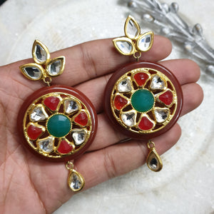 22k Gold Plated Multicolor Stone Kundan Earrings