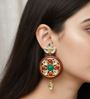 Styling: These are the perfect accessories to accentuate the elegance of your traditional outfit, furthermore, adding a perfect pop of colour and edginess. The beautiful elements of the earrings go well with the saree or any Western dress. Statement earrings are enough to make the entire outfit look amazing. It looks better with a solid colour outfit or a pastel outfit.