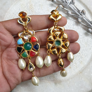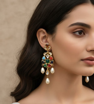 An elegant pearl stone kundan earrings with the most stunning festoon. The perfect accessory for your occasion. This earrings are handcrafted with love