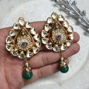 Styling: These are the perfect accessories to accentuate the elegance of your traditional outfit, furthermore, adding a perfect pop of colour and edginess. The beautiful elements of the earrings go well with the saree or any Western dress. Statement earrings are enough to make the entire outfit look amazing. It looks better with a solid colour outfit or a pastel outfit.