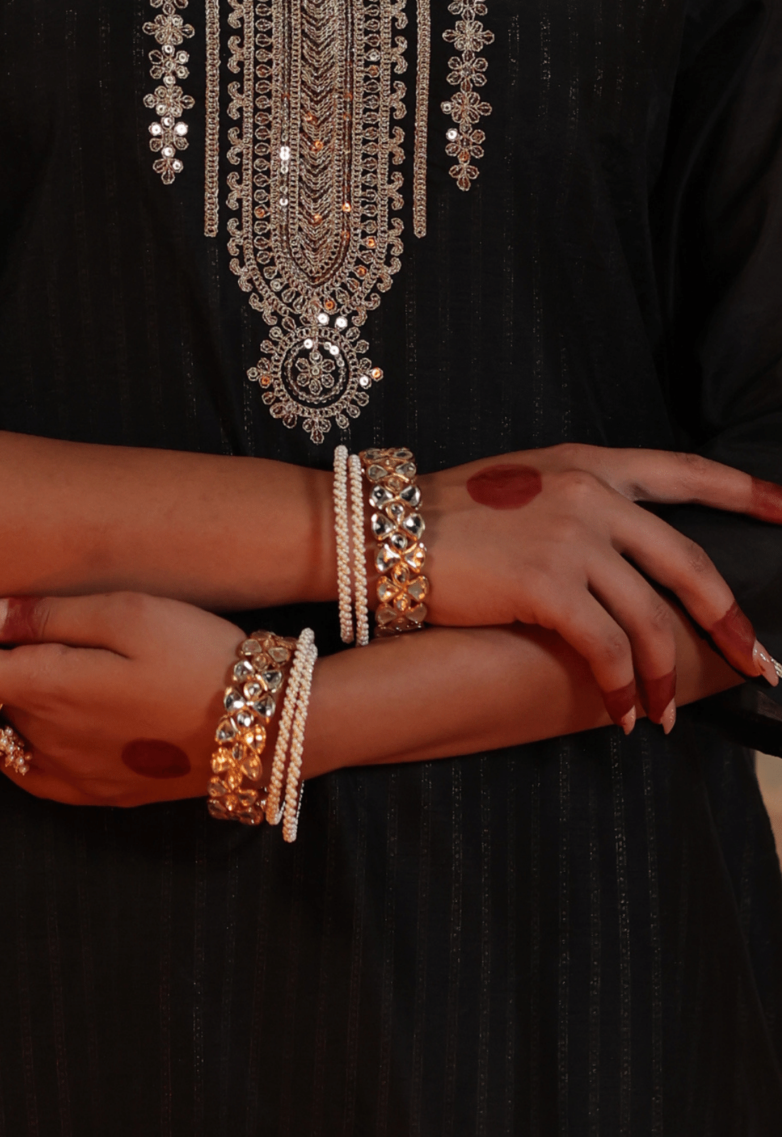 Gold Plated Kundan Bangles And Seed Pearl Bangles Combo