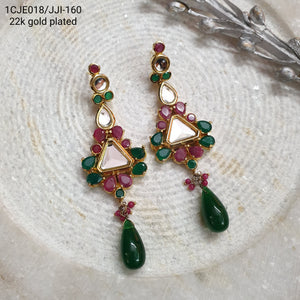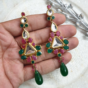 22k Gold Plated Pink Stone Long Kundan Earrings