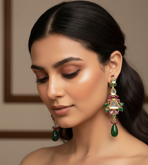 Styling: These are the perfect accessories to accentuate the elegance of your traditional outfit, furthermore, adding a perfect pop of colour and edginess. The beautiful elements of the earrings go well with the saree or any Western dress. Statement earrings are enough to make the entire outfit look amazing. It looks better with a solid colour outfit or a pastel outfit.