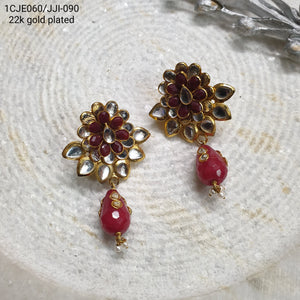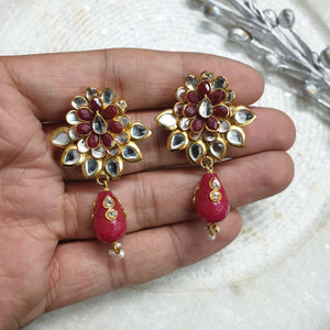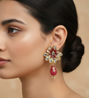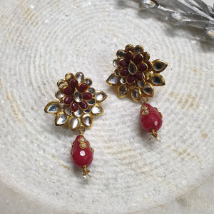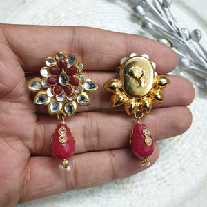 22k Gold Plated Red Floral Paachi Kundan Earrings