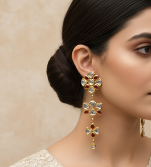Styling: These are the perfect accessories to accentuate the elegance of your traditional outfit, furthermore, adding a perfect pop of colour and edginess. The beautiful elements of the earrings go well with the saree or any Western dress. Statement earrings are enough to make the entire outfit look amazing. It looks better with a solid colour outfit or a pastel outfit.