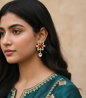 Styling: These are the perfect accessories to accentuate the elegance of your traditional outfit, furthermore, adding a perfect pop of colour and edginess. The beautiful elements of the earrings go well with the saree or any Western dress. Statement earrings are enough to make the entire outfit look amazing. It looks better with a solid colour outfit or a pastel outfit.
