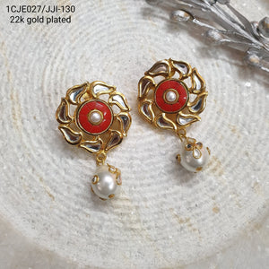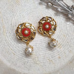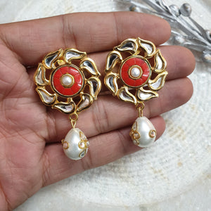 22k Gold Plated Red Stone Kundan Stud Earrings