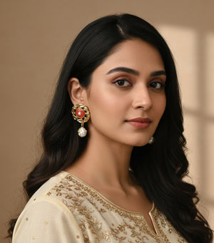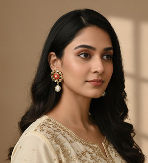 Styling: These are the perfect accessories to accentuate the elegance of your traditional outfit, furthermore, adding a perfect pop of colour and edginess. The beautiful elements of the earrings go well with the saree or any Western dress. Statement earrings are enough to make the entire outfit look amazing. It looks better with a solid colour outfit or a pastel outfit.