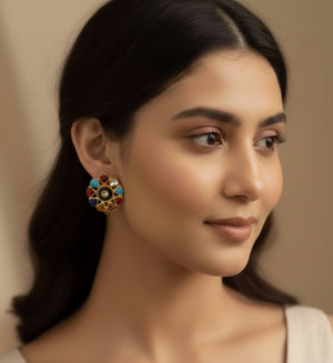 Styling: These are the perfect accessories to accentuate the elegance of your traditional outfit, furthermore, adding a perfect pop of colour and edginess. The beautiful elements of the earrings go well with the saree or any Western dress. Statement earrings are enough to make the entire outfit look amazing. It looks better with a solid colour outfit or a pastel outfit.