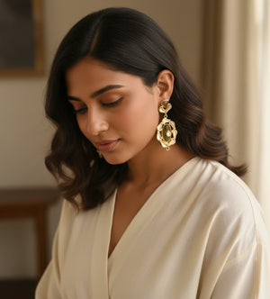 Styling: These are the perfect accessories to accentuate the elegance of your traditional outfit, furthermore, adding a perfect pop of colour and edginess. The beautiful elements of the earrings go well with the saree or any Western dress. Statement earrings are enough to make the entire outfit look amazing. It looks better with a solid colour outfit or a pastel outfit.