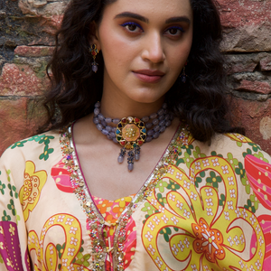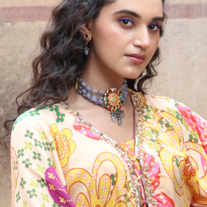 Styling: These are the perfect accessories to accentuate the elegance of your traditional outfit, furthermore, adding a perfect pop of color and edginess. The beautiful elements of the necklace go well with the saree or any Western dress. A statement necklace is enough to make the entire outfit look amazing. It looks better with a solid color outfit or pastel outfit.