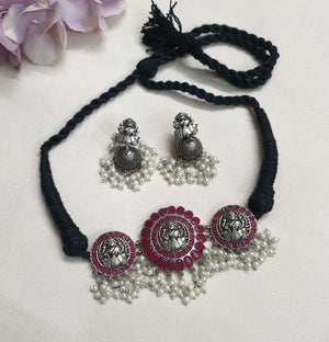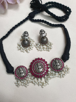 An elegant oxidised silver temple necklace with the most stunning festoon. The perfect accessory for your occasion. This necklace is handcrafted with love