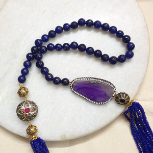 An elegant antique blue beaded necklace with the most stunning festoon. The perfect accessory for your occasion. This necklace is handcrafted with love