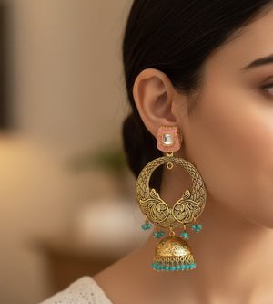Styling: These are the perfect accessories to accentuate the elegance of your traditional outfit, furthermore, adding a perfect pop of colour and edginess. The beautiful elements of the earrings go well with the saree or any Western dress. A statement earring is enough to make the entire outfit look amazing. It looks better with a colour outfit or a pastel outfit.
