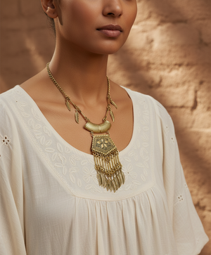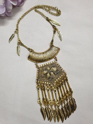 An elegant antique gold-tone necklace with the most stunning festoon. The perfect accessory for your occasion. This necklace is handcrafted with love