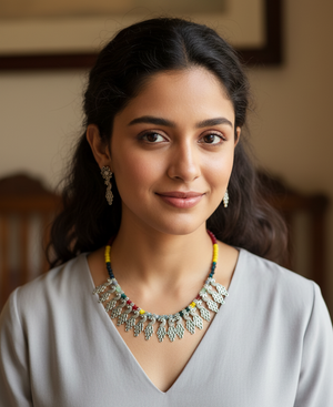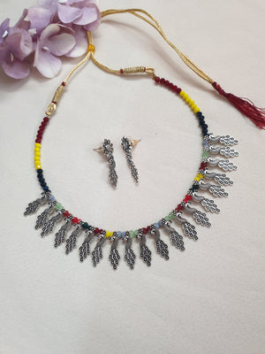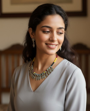 An elegant oxidised necklace with the most stunning festoon. The perfect accessory for your occasion. This necklace is handcrafted with love