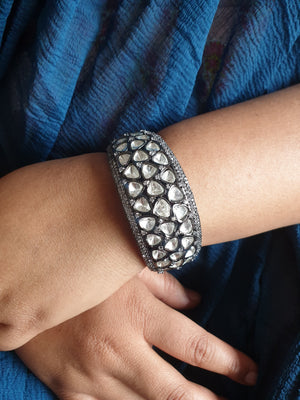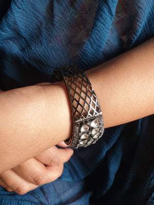 Styling: These are the perfect accessories to accentuate the elegance of your traditional outfit, furthermore, adding a perfect pop of color and edginess. The beautiful elements of the bangle go well with the saree or any Western dress. A statement bangle is enough to make the entire outfit look amazing. It looks better with a solid color outfit or pastel outfit.