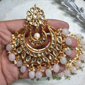 Baby Pink Kundan Chandbali Earrings