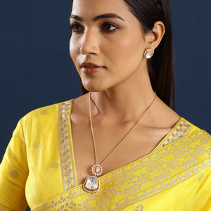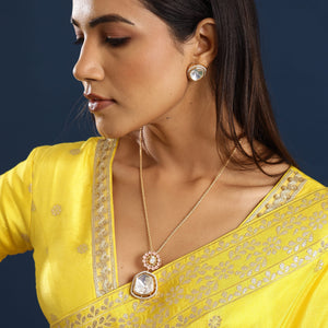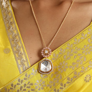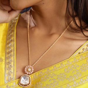 Baby Pink Stone Kundan Pendant Set With Earrings