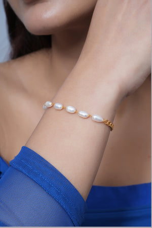 Adorn your wrist with sophistication. Our Gold Tone Baroque Pearl Adjustable Bracelet adds timeless elegance to any outfit, effortlessly versatile and chic