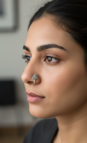An elegant leaf design nose pin the most stunning festoon. The perfect accessory for your occasion. This nose pin is handcrafted with love