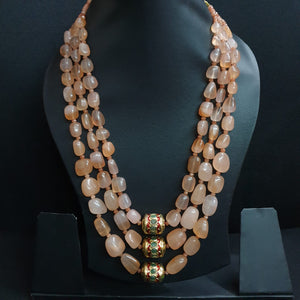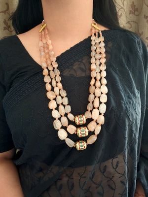 Elevate your style with this exquisite light brown stone beaded necklace set. Its intricate craftsmanship and regal charm make it the perfect statement piece
