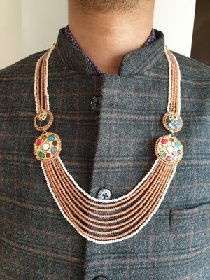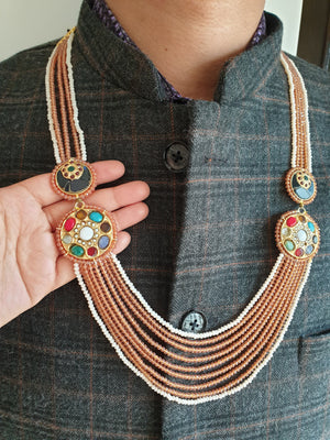 Styling: These are the perfect accessories to accentuate the elegance of your traditional outfit, furthermore, adding a perfect pop of color and edginess. The beautiful elements of the necklace go well with the sherwani or narrow jacket. A statement groom necklace is enough to turn the entire outfit look amazing. It looks better with a solid color outfit or pastel outfit.