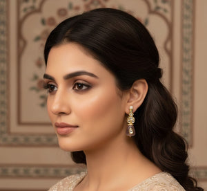 Styling: These are the perfect accessories to accentuate the elegance of your traditional outfit, furthermore, adding a perfect pop of colour and edginess. The beautiful elements of the earrings go well with the saree or any Western dress. A statement earring is enough to make the entire outfit look amazing. It looks better with a colour outfit or a pastel outfit.