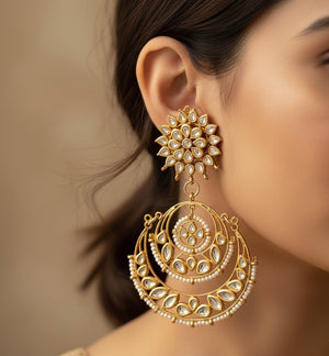 Big Kundan Stone Chandbali Earrings