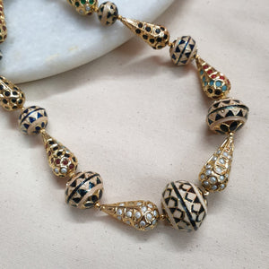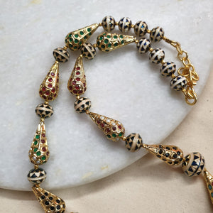 An elegant designer jadau meenakari necklace with the most stunning festoon. The perfect accessory for your occasion. This necklace is handcrafted with love