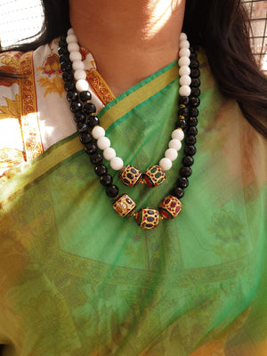 An elegant designer Jadau bead necklace with the most stunning festoon. The perfect accessory for your occasion. This necklace is handcrafted with love