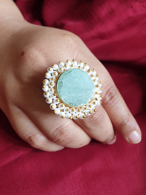 Stone Pearl Beaded Adjustable Ring