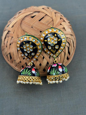 Elegant handpainted jhumki earrings with the most stunning festoon. The perfect accessory for your occasion. These earrings are handcrafted with love